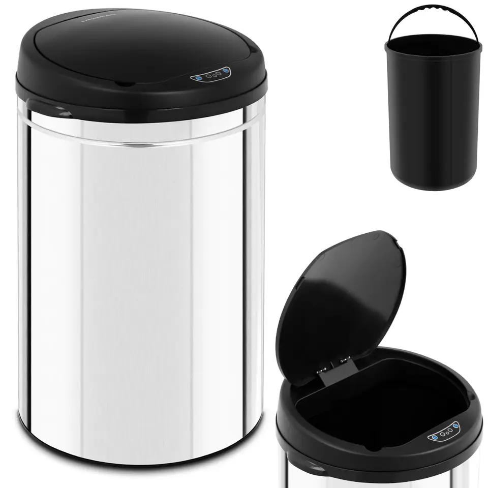 Kosz na śmieci z pojemnikiem marki Fromm & Starck to doskonały element wyposażenia każdego wnętrza. Automatyczny kosz na śmieci świetnie sprawdzi się w domach, biurach, sklepach czy warsztatach. Automatyczny kosz na śmieci pomieści sporą ilość odpadów, dzięki dużej pojemności wynoszącej 30 l. Natomiast wyjmowany pojemnik z rączką posłuży do wygodnego wynoszenia śmieci po zapełnieniu śmietnika. Bezdotykowy kosz na śmieci został wyposażony w czujnik ruchu służący do bezkontaktowego otwierania i zamykania klapy kosza. Jego maksymalny zasięg to 30 cm. Kosz na śmieci z pojemnikiem został również wyposażony w diody LED. Całość zasilana jest na 4 baterie typu AA.