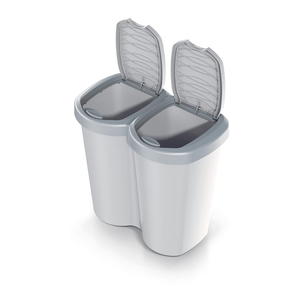 Nowoczesny kosz na śmieci Compacta B Duo o pojemności 40 litrów został zaprojektowany z myślą o wygodnym i higienicznym segregowaniu odpadów. Wyposażony jest w jedną komorę z dwiema niezależnymi pokrywami, co pozwala na łatwe rozdzielanie różnych rodzajów śmieci w jednym pojemniku. Solidne ramki mocujące stabilnie utrzymują worki na odpady, zapobiegając ich zsuwaniu się podczas użytkowania.