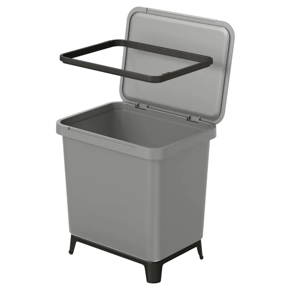 Sortownik z linii Systema jest idealnym rozwiązaniem dla miejsc o ograniczonej przestrzeni. Został wyposażony w designerską, uchylną pokrywę oraz funkcjonalną ramkę, dzięki której worek jest stabilnie umocowany i nie zmienia położenia.