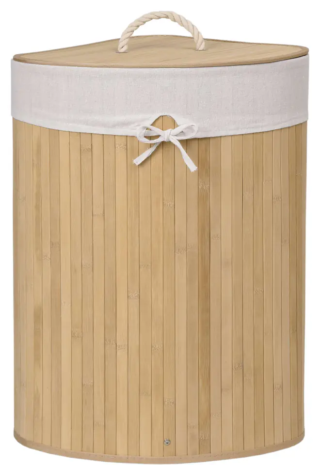 Kosz narożny na pranie bambusowy z pokrywą natural 60L