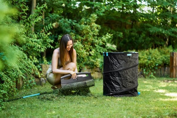 przeznaczony do zbierania liści, skoszonej trawy, gałązek czy chwastów