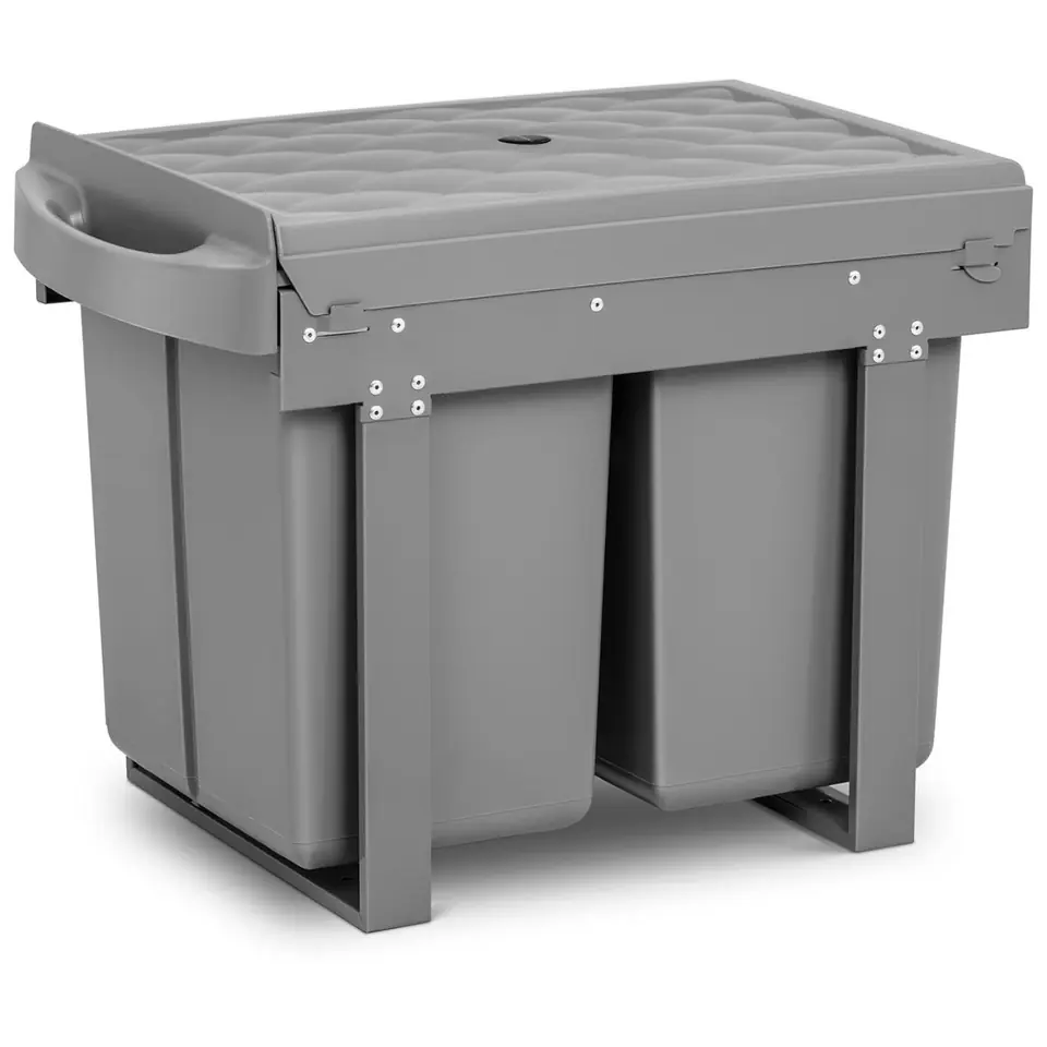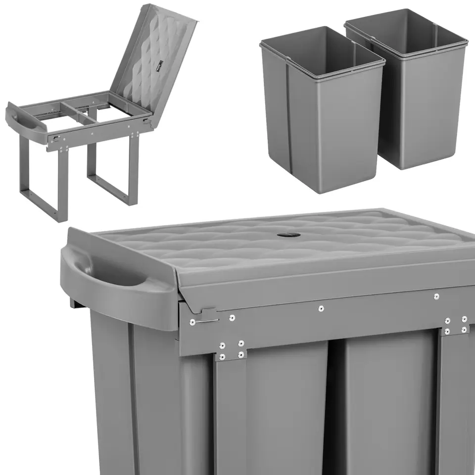 Kod producenta: 10260200Kubeł na śmieci do szafki marki Fromm Starck to świetny sposób na segregację odpadów w kuchni takich jak papier, plastik czy resztki organiczne. Pojemnik na śmieci zajmuje mało miejsca i jest wysuwany, dlatego świetnie sprawdzi się w Twoim domu. Duża pojemność segregatora na śmieci wynosi 2 x 20 l. Dwa wyjmowane kosze wyposażono w rączkę. Szerokość kubła do zabudowy wynosi 40 cm. Pokrywę można zdejmować. Konstrukcja została wykonana z żelaza malowanego proszkowo, polipropylenu i ABS-su. Kosz na śmieci do szafki jest bardzo wygodny w użytkowaniu. W pełni się wysuwa, a dzięki amortyzowanym prowadnicom cicho domyka. Łatwo go zamontować.Cechy produktu: