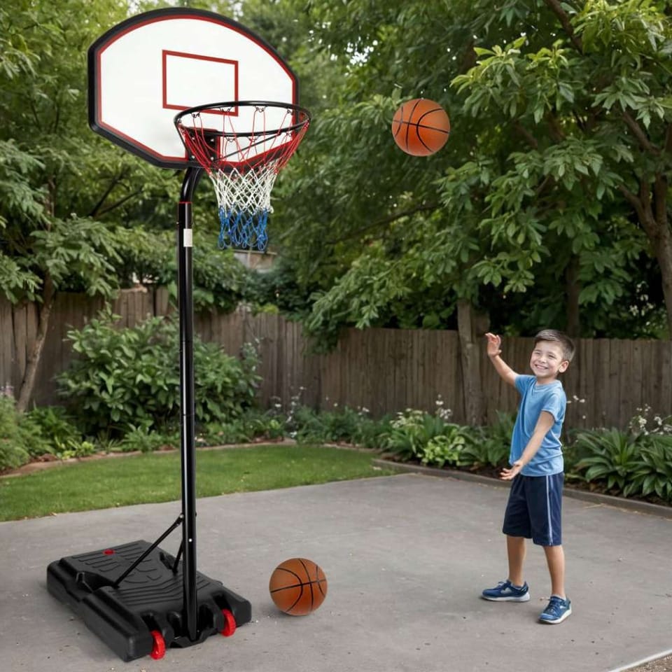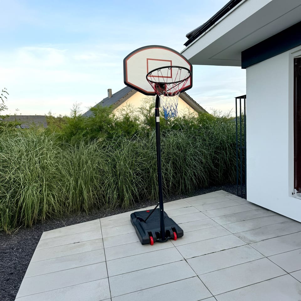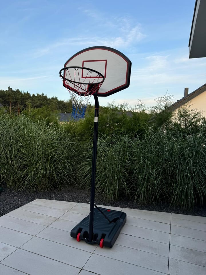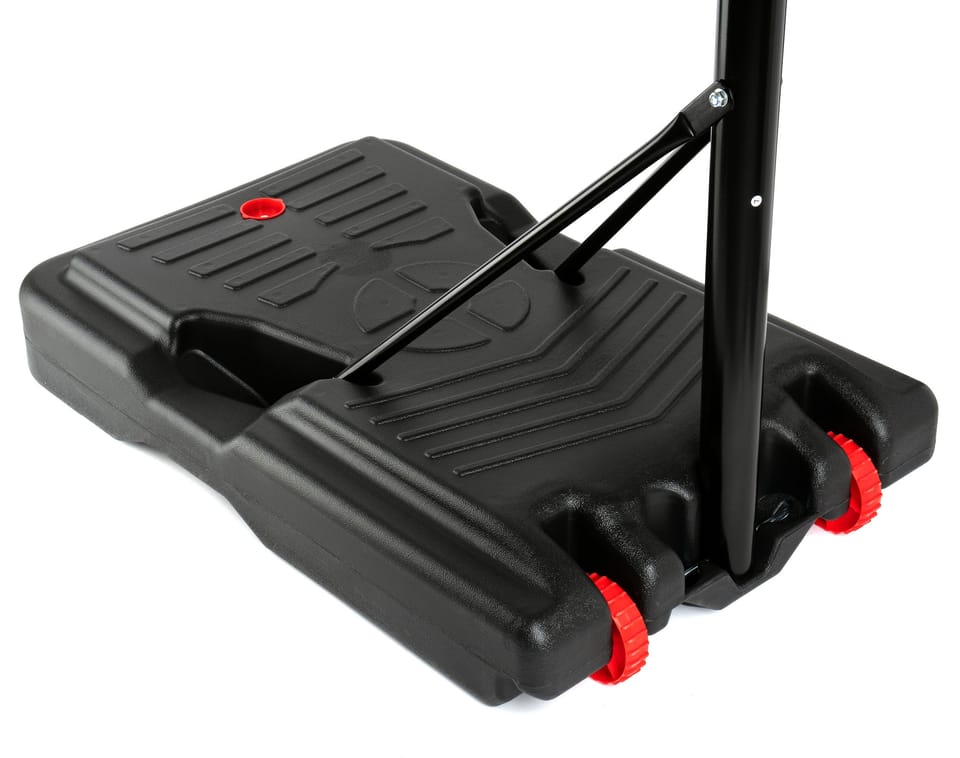 Kosz regulowany na stojaku do koszykówki JAMES 3,5 mKosz do koszykówki z regulacją wysokości Kosz do koszykówki James – Podnoś swoje umiejętności na wyższy poziom każdego dnia! Kosz do koszykówki James to niezawodny zestaw, który wspiera rozwój umiejętności koszykarskich i zapewnia mnóstwo radości. Dzięki trwałej konstrukcji, regulowanej wysokości oraz mobilnej podstawie, idealnie nadaje się zarówno do gry w domu, jak i na zewnątrz. Łatwy montaż i wyjątkowa stabilność zapewniają komfort i bezpieczeństwo podczas gry, co czyni go idealnym wyborem na prezent. Z koszem James poprawisz swoją szybkość, celność i współpracę w zespole. ✅ Regulowana obręcz: 206-305 cm, całość: 256-355 cm✅ Mobilna podstawa z kółkami dla łatwego przestawiania✅ Stabilna podstawa wypełniana piaskiem lub wodą✅ Wytrzymała stalowa konstrukcja✅ Idealny prezent dla każdego miłośnika koszykówki! ✔️ Specyfikacja:Materiał stelaża: stal malowana proszkowoWykończenie stelaża: czarnyMateriał podstawy i tablicy: tworzywo sztuczneRegulacja wysokości: takMobilność: tak (wmontowane koła)Wypełnienie podstawy: należy wypełnić wodą lub piaskiemZawartość zestawu: kosz, siatka, tablica, stelaż, podstawa, instrukcja w j, polskim, zestaw montażowy.Waga: 15,5 kgPojemność podstawy: 58 litrów ✔️ Wymiary:Wysokość z tarczą: 256-355 cmWysokość do obręczy: 206-305 cmGłębokość całkowita: 157cmGłębokość podstawy: 91 cmSzerokość całkowita: 59 cmGrubość stelaża: 58 mmWymiar tablicy: 90 x 60 cmŚrednica zewnętrzna obręczy: 48 cmŚrednica prętu obręczy: 16 mm ⬇️Zalety⬇️✅Najwyższa jakość materiałów✅Solidna i wytrzymała konstrukcja✅Idealny kosz dla początkujących✅Świetny pomysł na prezent✅Doskonały do wspólnej zabawy z rodziną✅Pomaga rozwijać koordynację ruchową✅Pozwala udoskonalać technikę, celność i samozaparcie✅Do gry zespołowej jak i indywidualnego treningu✅Duża pojemność podstawy✅Regulowana wysokość✅Estetyczne wykonanie✅Mobilny dzięki kółkom ✅ Regulacja wysokościKosz James posiada funkcję regulacji wysokości, co pozwala dostosować jego poziom do potrzeb różnych graczy. Dzięki temu jest odpowiedni zarówno dla dzieci, jak i dorosłych. ✅ Mobilna podstawaPodstawa kosza James jest wyposażona w kółka, co ułatwia jego przestawianie. Wypełnienie podstawy wodą lub piaskiem zapewnia stabilność, jednocześnie umożliwiając łatwe przenoszenie zestawu. ✅ Wytrzymała konstrukcjaKosz James został zaprojektowany z myślą o długotrwałym użytkowaniu. Jego stelaż i obręcz wykonano z solidnej stali malowanej proszkowo, co zapewnia wyjątkową trwałość i odporność na uszkodzenia mechaniczne. ✅ Łatwe napełnianie podstawyDzięki szerokiemu otworowi, napełnienie podstawy wodą lub piaskiem jest szybkie i bezproblemowe. Proces ten zapewnia stabilność całej konstrukcji. To praktyczne rozwiązanie sprawia, że przygotowanie kosza do gry jest proste i nie wymaga dużego wysiłku. UWAGA | Przedstawione kolory należy traktować poglądowo - mogą odbiegać od rzeczywistych, ze względu na różne ustawienia monitorów oraz proces obróbki zdjęć. Rzeczywiste wymiary mogą się różnić od tych podanych w opisie - tolerancja błędów może wynosić +/- 2 cm.