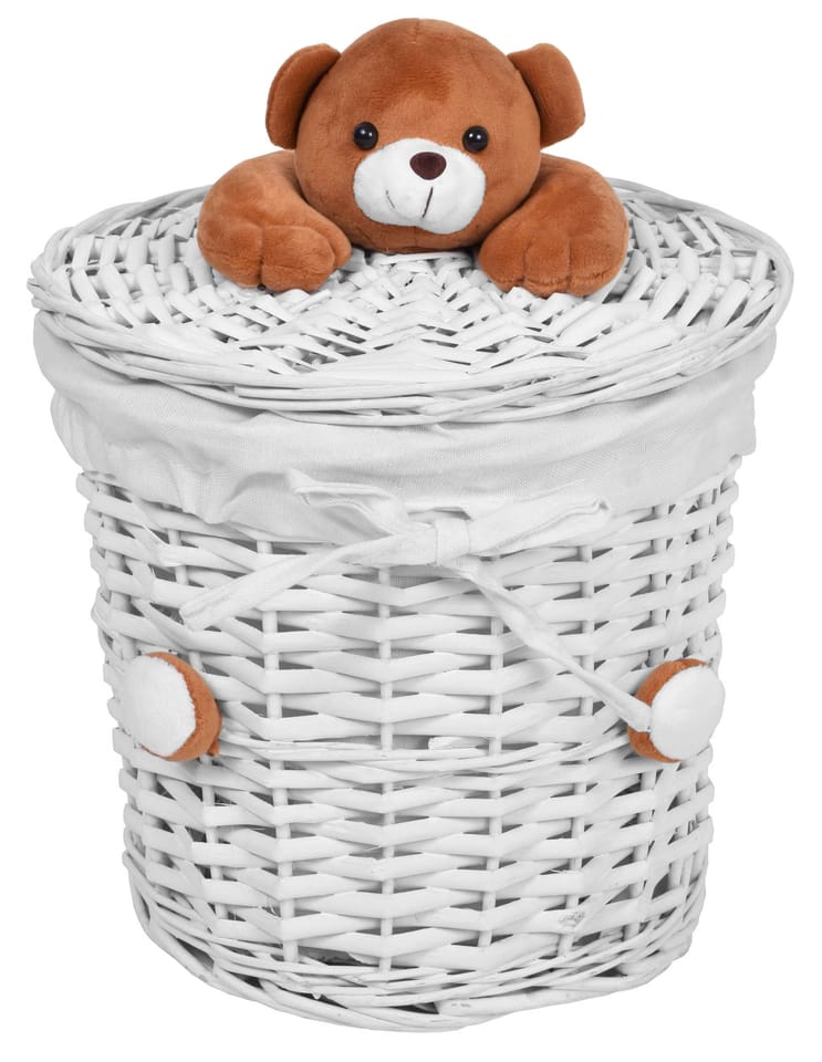 Kosz wiklinowy z pluszowym misiemWymiary 28x28 cmKosz wiklinowy idealnie sprawdzi się jako kosz na zabawki lub małe drobiazgi w królestwie Twojego dziecka. Jest on bardzo ładnym i estetycznym uzupełnieniem kazdego pomieszczenia.Produkt wykonany z wikliny równym splotem, w środku wyścielony wytrzymałym, kremowym, lnianym materiałem. Pokrywa posiada na górze przyjemnego w dotyku, pluszowego misia. Specyfikacja►100% naturalna wiklina►Mocny materiał wyściółki►Ręcznie wyplatane►Możliwość zdejmowania wyściółki►Nowy, atrakcyjny design►Środek wykończony lnianą wyściółką►Na pokrywie pluszowy miś Wymiary►Wysokość kosza z maskotką - 36 cm►Wysokość kosza bez maskotki - 28 cm►Średnica kosza: 28 cm UWAGA | Przedstawione kolory należy traktować poglądowo - mogą odbiegać od rzeczywistych ze względu na różne ustawienia monitorów oraz proces obróbki zdjęć. Rzeczywiste wymiary mogą się różnić od podanych w opisie. Tolerancja błędów może wynosić +/- 2 cm