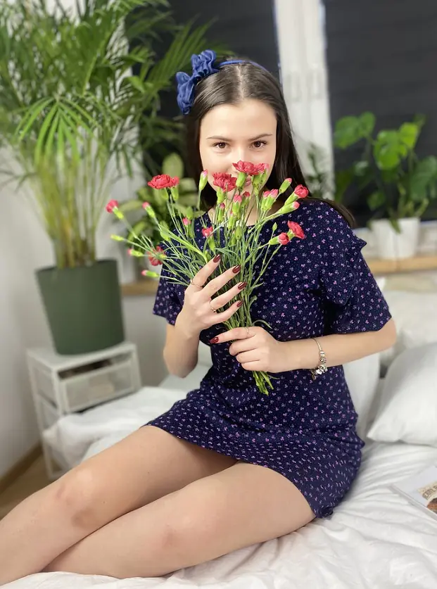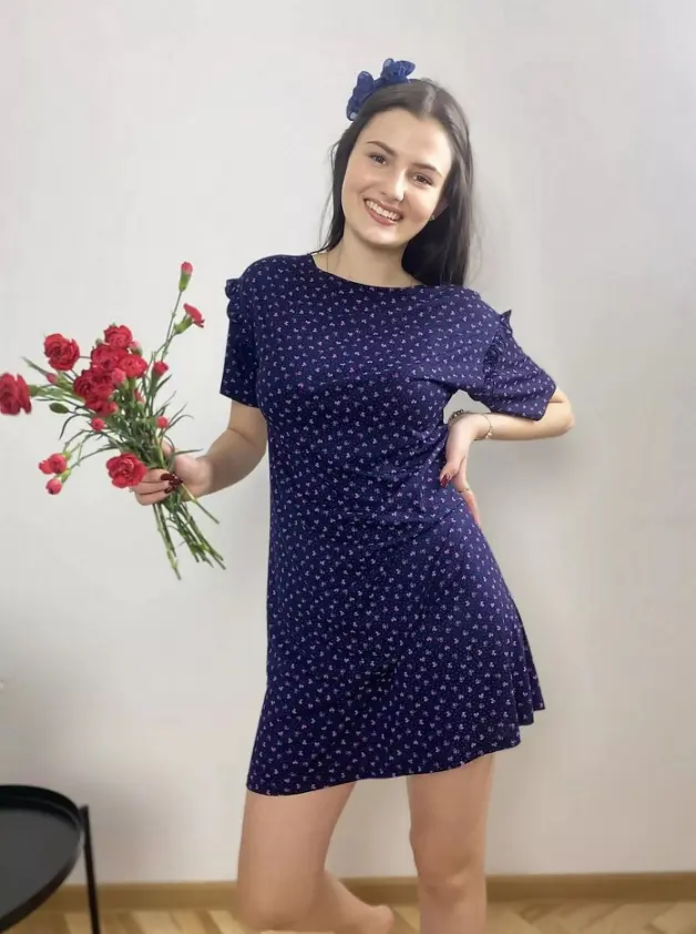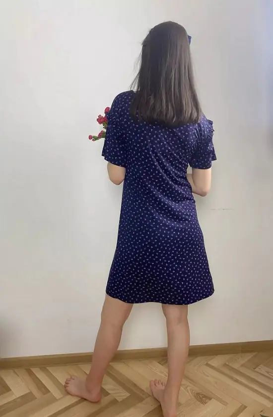 Koszula nocna w kokardki wykonana z przyjemnej wiskozy. Krótki rękaw ozdobiony falbankami. Długość przed kolano.