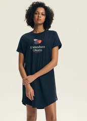 Bawełniana koszula damska ozdobiona aplikacją z przodu. Jej luźny fason i krótki rękaw sprawiają, że idealnie sprawdzi się w cieplejsze dni. Długość przed kolano. Skład: 100% bawełna.