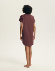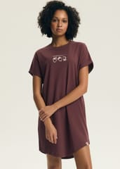 Koszula nocna damska z miękkiej bawełny o luźnym, prostym kroju ozdobiona z przodu nadrukiem. Krótki rękaw z delikatnie podwiniętym wykończeniem, zaokrąglona na dole, długość przed kolano. Skład: 100% bawełna.