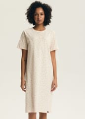 Bawełniana koszula dla kobiet ceniących wygodę, elegancję i naturalne materiały. Delikatna dla skóry, przewiewna i przyjemna w dotyku. Półokrągły, rozpinany dekolt, krótki rękaw, luźny fason, długość za kolano. Skład:100% bawełna.