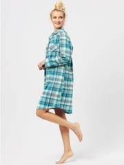 Koszula damska nocna w kratę z kołnierzykiem. Luźny wygodny krój, zapinana na guziki. Rękawy długie.