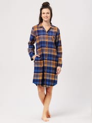 Koszula damska nocna w kratę z kołnierzykiem. Luźny wygodny krój, zapinana na guziki. Rękawy długie.