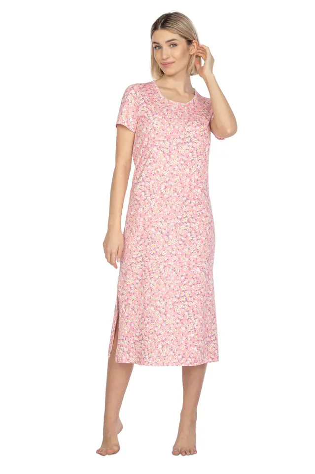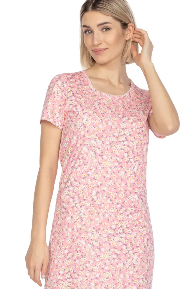 Bawełniana wzorzysta koszula damska z krótkim rękawem. Długość za kolano. Skład: 100% bawełna.