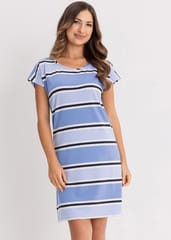 Koszula damska z wiskozy. Materiał doskonale dopasowuje się do sylwetki, nie krępuje ruchów i pozwala skórze swobodnie oddychać nawet w ciepłe noce. Dekolt półokrągły, długość przed kolano, krótki rękaw. Skład: 96% wiskoza, 4% elastan.