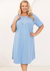 Bawełniana koszula damska z przódem ozdobionym nadrukiem. Przyjemna w dotyku, miękka i elastyczna co zapewnia komfort przez całą noc nie krępując ruchów. Dekolt półokrągły, krótki rękaw, długość przed kolana. Skład: 100% bawełna.