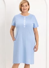 Bawełniana koszula damska, jednolita. Przyjemna w dotyku, miękka i elastyczna co zapewnia komfort przez całą noc nie krępując ruchów. Dekolt półokrągły -rozpinany,na biodrach kieszenie, krótki rękaw, długość przed kolana. Skład: 100% bawełna.