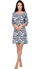 Koszula damska wzorzysta, rękaw 3/4. Długość przed kolano. Luźny, wygodny fason. Skład: 100% bawełna.