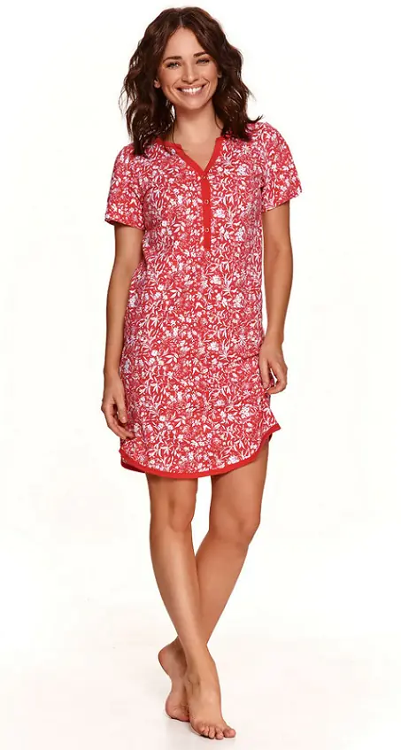 Koszula damska w kwiaty wykonana z wysokiej jakości bawełny, z krótkim rękawem. Dekolt z rozcięciem zapinany na trzy zatrzaski.