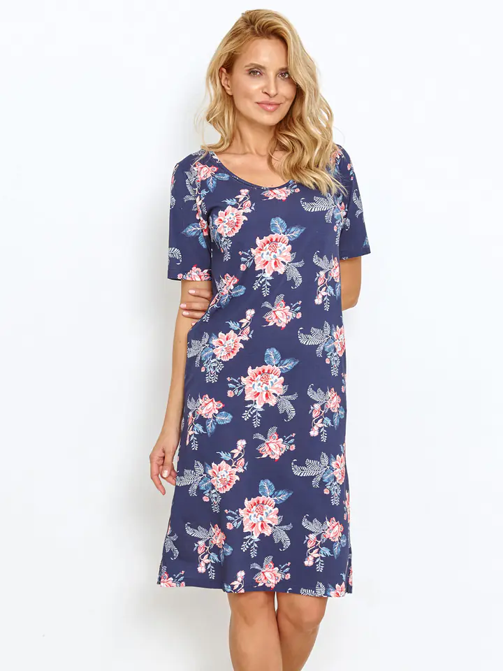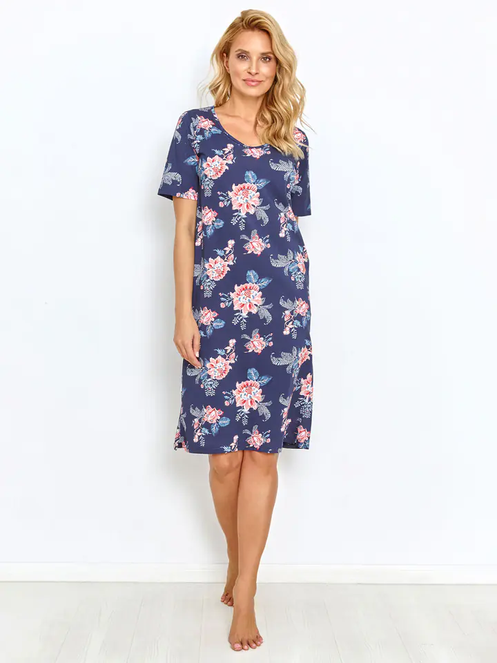 Koszula nocna wykonana z wysokiej jakosci bawełny. Wzorzysta z krótkim rękawem. Skład: 100% bawełna.