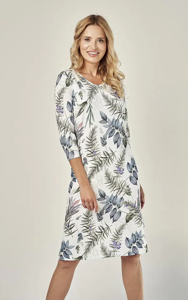 Koszula damska wzorzysta wykonana z wysokiej jakościbawełny. Rękaw 3/4, długość do kolan. Skład: 100% bawełna.