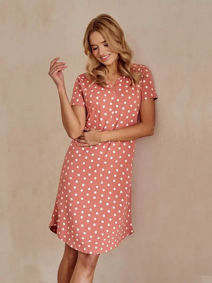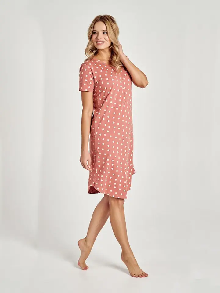 Letnia koszula damska wykonana z wysokiej jakości bawełny. Wzór w grochy. Skład: 100% bawełna.