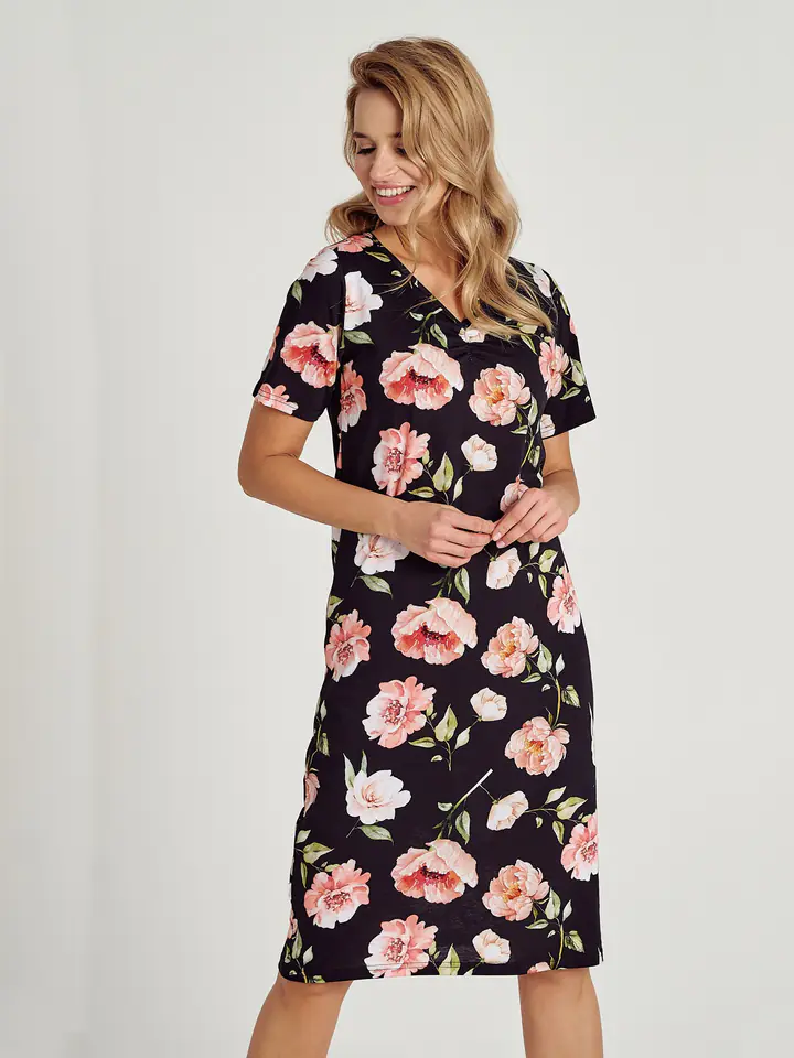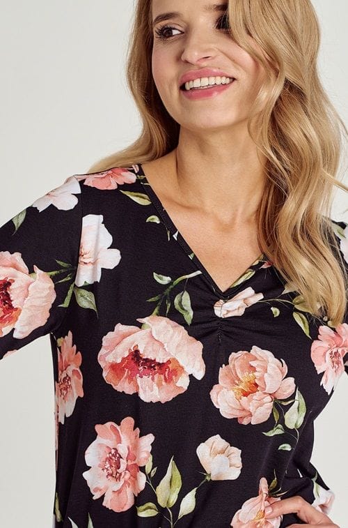 KOSZULA TARO 3134 PEONY SS24 kolor CZARNY-KWIATKI, rozmiar M