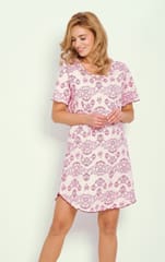 Koszula damska z wysokiej jakości bawełny ozdobiona koronkowym printem. Krótki rękaw, półokrągły dekolt, długość przed kolano. Skład: 100% bawełna.
