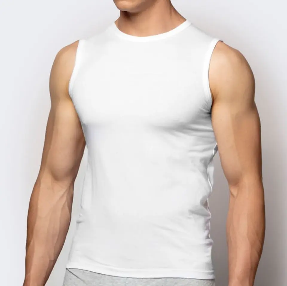 Klasyczny męski podkoszulek bez rękawów, wykonany z przyjemnej w dotyku bawełnianej dzianiny. Idealnie dopasowuje się do sylwetki, zapewniając wygodę noszenia. Skład: 95% bawełna, 5% elastan.