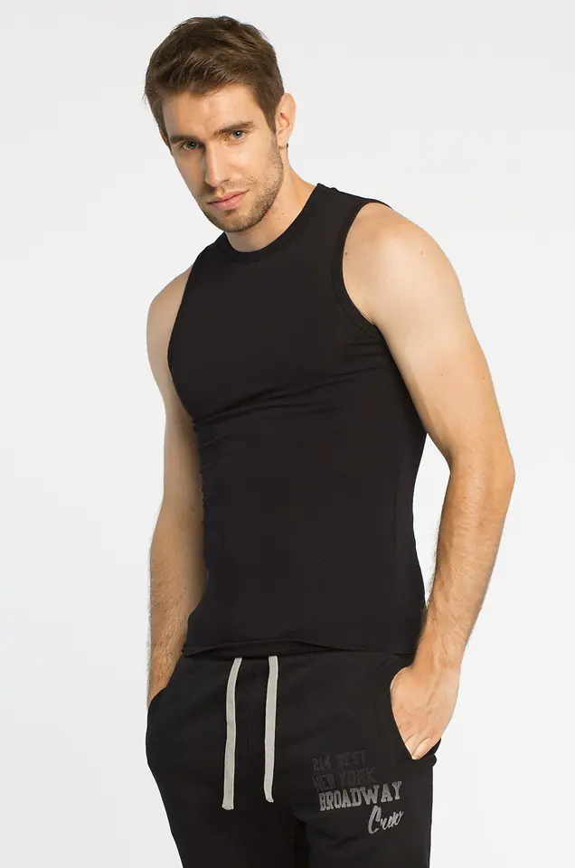 Klasyczny męski podkoszulek bez rękawów, wykonany z przyjemnej w dotyku bawełnianej dzianiny. Idealnie dopasowuje się do sylwetki, zapewniając wygodę noszenia. Skład: 95% bawełna, 5% elastan.
