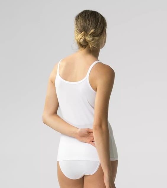 Koszulka damska idealnie dopasowująca się do sylwetki, która sprawdzi się zarówno jako baza stylizacji casualowej, ale też jako sposób na ogrzanie ciała.Cienkie ramiączko. Skład: 93% bawełna, 7% elastan.