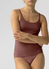 Przylegająca do sylwetki i idealnie dopasowująca się koszulka damska na ramiączkach. Przewiewna, oddychająca i absorbująca wodę dzianina skutecznie zapobiega poceniu się ciała. Skład: 93% bawełna, 7% elastan.