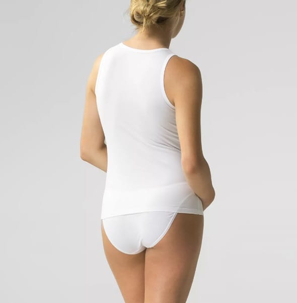 Koszulka damska idealnie dopasowująca się do sylwetki, która sprawdzi się zarówno jako baza stylizacji casualowej, ale też jako sposób na ogrzanie ciała. Grubsze ramiączko. Skład: 93% bawełna, 7% elastan.