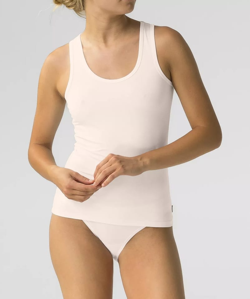 Podkoszulek z uniwersalnej głębokości dekoltem na grubszym ramiączku wykonany jest z przyjemnej w dotyku bawełny, przewiewnej, oddychającej i niedopuszczającej do niekomfortowego pocenia się ciała. Skład: 93% bawełna, 7% elastan.