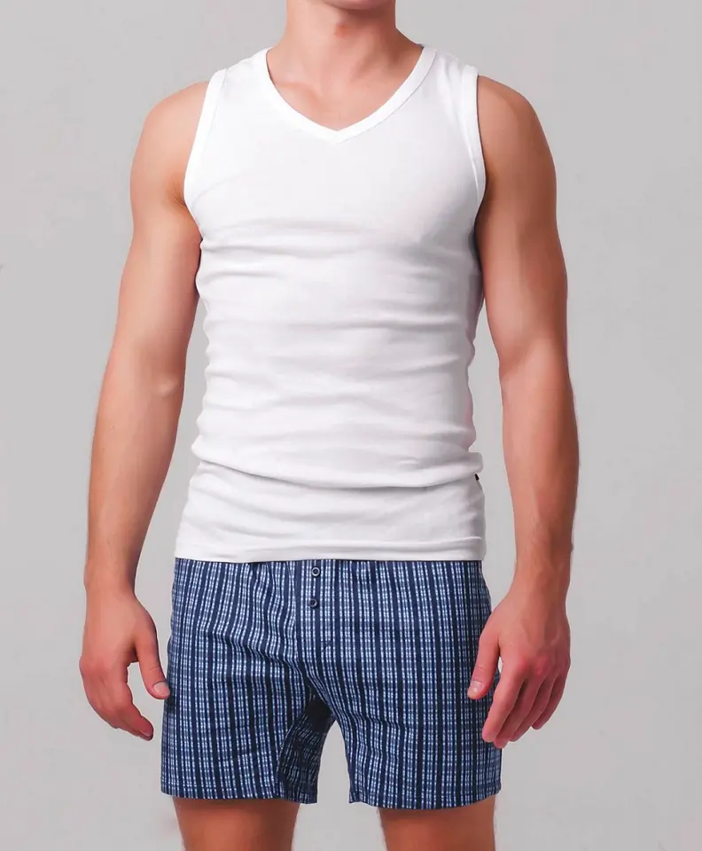 Podkoszulek męski bez rękawów, wykonany z miękkiej bawełny. Dzięki dekoltowi w kształcie litery V i wyprofilowanemu cięciu wokół ramion pozostaje niewidoczny pod koszulą. Materiał: 100% bawełna.