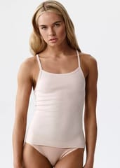 Podkoszulek damski łączący wygodę z dynamiczną formą oraz uniwersalnym charakterem. Cienkie ramiączka i bokserkowy krój pleców podkreślają linię ramion, zapewniają maksimum wygody oraz swobodę ruchów. Skład: 95% bawełna, 5% elastan.