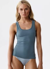 Damski top na szerokich ramiączkach to połączenie wygody, uniwersalnej formy i wyrazistego charakteru. Prążkowana dzianina dopasowuje się do ciała, podkreśla sylwetkę i zapewnia pełną swobodę ruchów. Skład: 95% bawełna, 5% elastan.