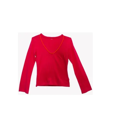 Koszulka damska z długim rękawem. Dekolt w literę V, wykończony lamówką w kontrastującym kolorze. Uszyta z miękkiej i przyjemnej w dotyku bawełny (95%) z dodatkiem elastanu (5%), który sprawia, że koszulka jest sprężysta i dopasowuje się do ciała.