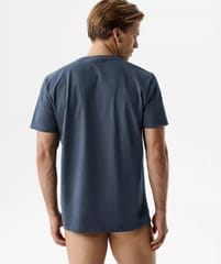 T-shirt męski o uniwersalnym kroju z dzianiny przypominającej aksamitną skórkę brzoskwini „peach effect”. Model z krótkimi rękawami oraz okrągłym wycięciem przy szyi sprawdzi się w codziennych stylizacjach casualowych i sportowych. Skład: 100% bawełna.