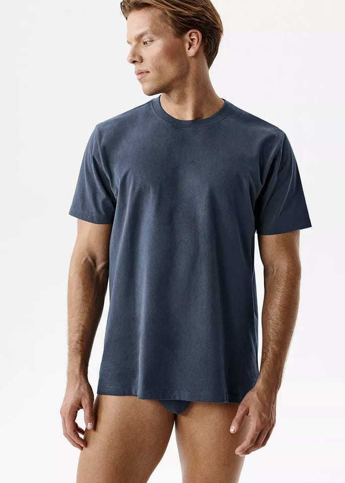 T-shirt męski o uniwersalnym kroju z dzianiny przypominającej aksamitną skórkę brzoskwini „peach effect”. Model z krótkimi rękawami oraz okrągłym wycięciem przy szyi sprawdzi się w codziennych stylizacjach casualowych i sportowych. Skład: 100% bawełna.