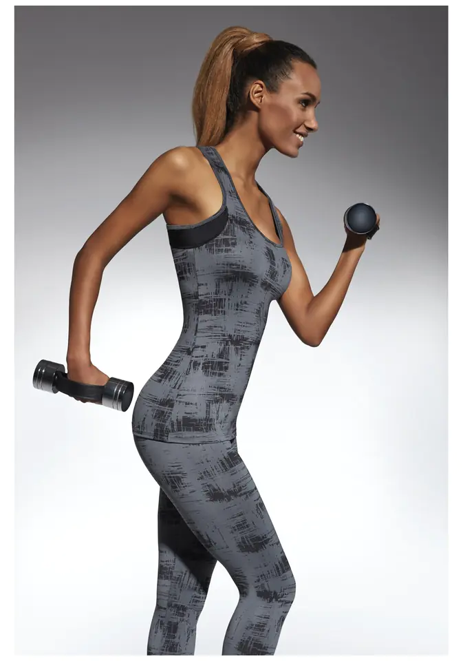 Top sportowy z nadrukiem. Materiał w pełni kryjący , elastyczny , modelujący sylwetkę. Posiada właściwości funkcyjne, jest oddychający. Skład: 85% poliester, 15% elastan.