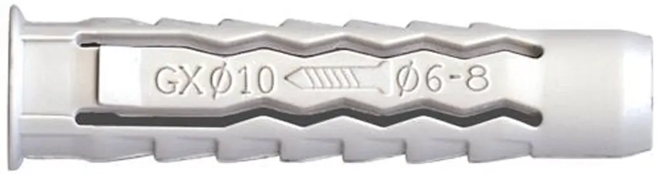 Dybel uniwersalny z kołnierzem , rozpiera w czterech kierunkach , koszulka wykonana w 100% z nylonu .