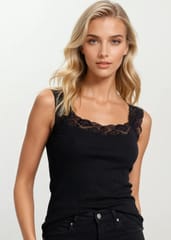 Elegancka koszulka damska z miłej i przyjemnej dla ciała bawełny idealna pod marynarkę i na co dzień. Klasyczny, wysmuklający krój z grubymi koronkowymi ramiączkami i koronkowym dekoltem. Skład: 100% bawełna.