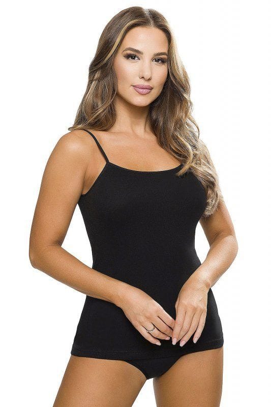 Klasyczna koszulka na wąskich ramiączkach z wysokiej jakości bawełny. Miękka i delikatna, idealnie dopasowuje się do ciała, zapewnia komfort noszenia.