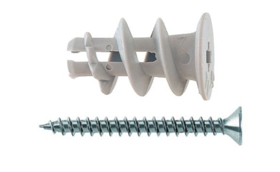 Spiralny kołek jest przytrzymywany dopasowując się kształtem do otworu.