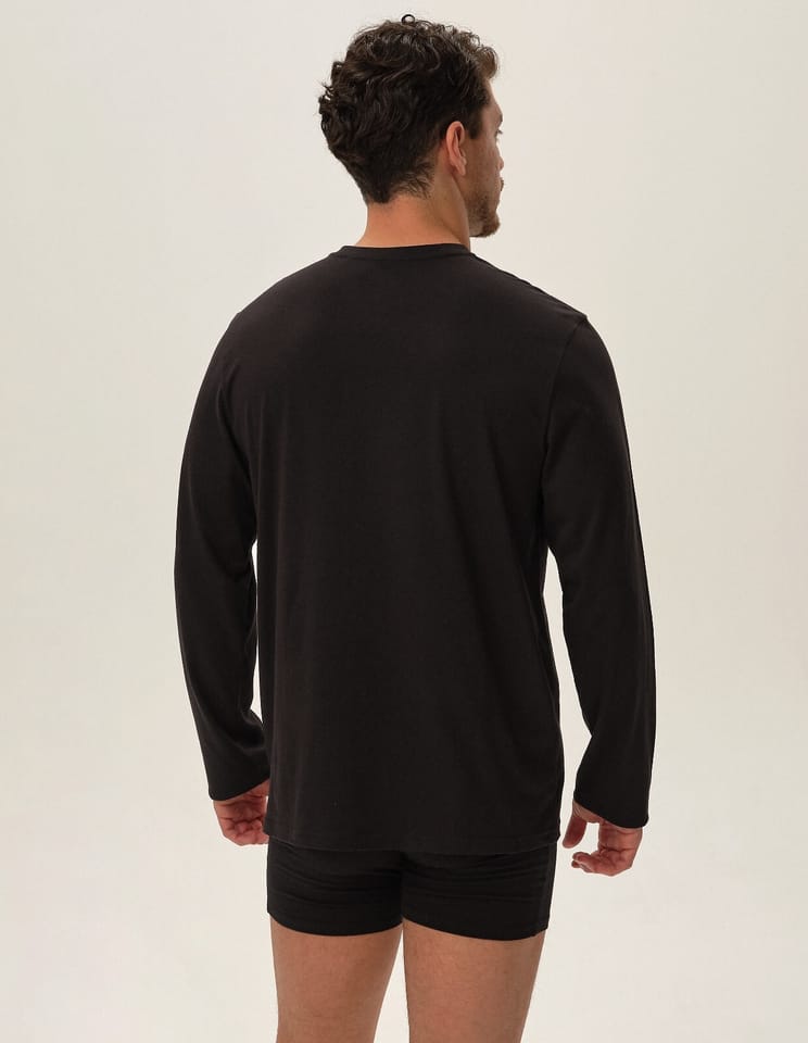 Koszulka męska z wysokiej jakości bawełny. Klasyczn krój z długim rękawem, dekolt w szpic, długi rękaw. Dół bluzki z małym logo marki. Pakowana po 2 sztuki. Skład: 100% bawełna.