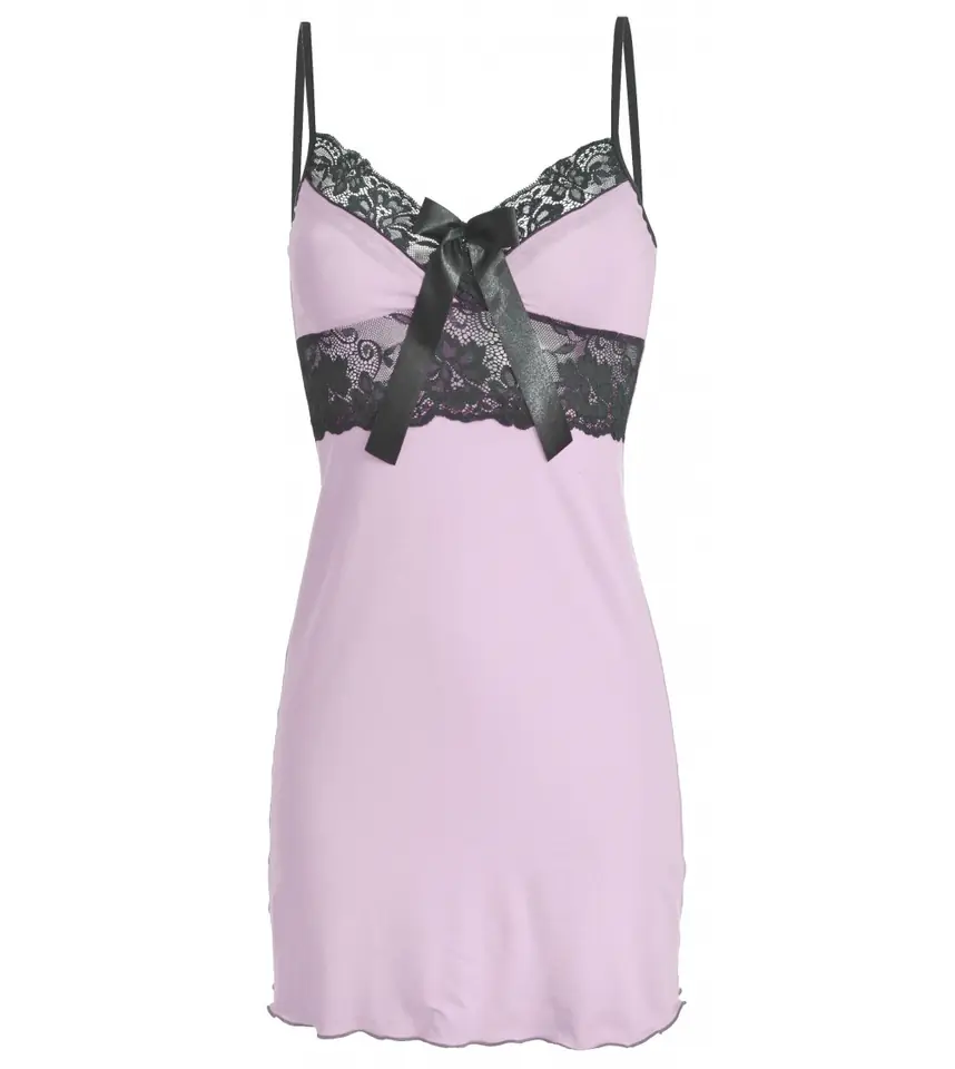 Koszulka nocna, która wygląda bardzo niewinnie. Delikatny kolor uzupełnia pasmo czarnej koronki, która dekoruje zarówno dekolt, jak i obszar pod biustem. Subtelny krój lekko dopasowany do ciała, wykonany z miękkiej tkaniny. Skład: 95% wiskoza, 5% elastan.