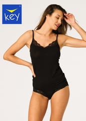Koszulka damska na cienkim ramiączku z delikatną koronką na dekolcie. Niezwykle lekka, delikatnie otula i ogrzewa ciało, dzięki splotom trzech dzianin zapewnia niezwykły relaks i komfort. Skład: 85% modal, 10% wełna merino, 5% elastan.