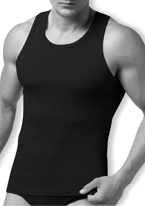 Koszulka męska na szerokich ramiączkach uszyta z miękkiej, naturalnej bawełny (100%). Koszulka jest przyjemna dla ciała, sprężysta dzianina zachowuje kształt produktu, łatwo dopasowuje się do sylwetki.