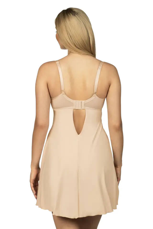 Koszulka nocna z miękkimi miseczkami na fiszbinach. Szerokość ramiączek i typ zapięcia dostosowane do rozmiaru koszulki. Skład surowcowy: 85% Poliamid, 15% Elastan