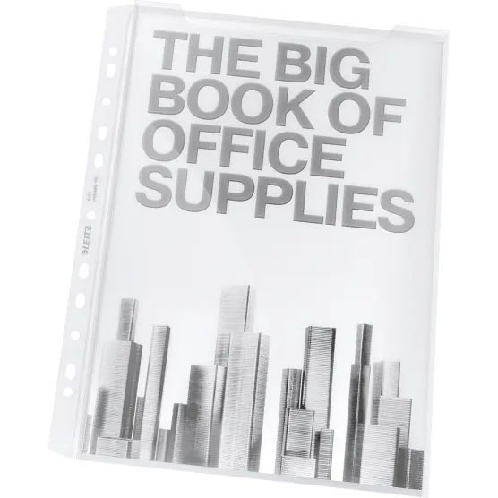 Koszulki z poszerzanym o 20 mm harmonijkowym brzegiem pozwalają na wlozenie do środka obszernych dokumentów i katalogów. Perfekcyjnie nadają sie do wpiecia do segregatorów.
