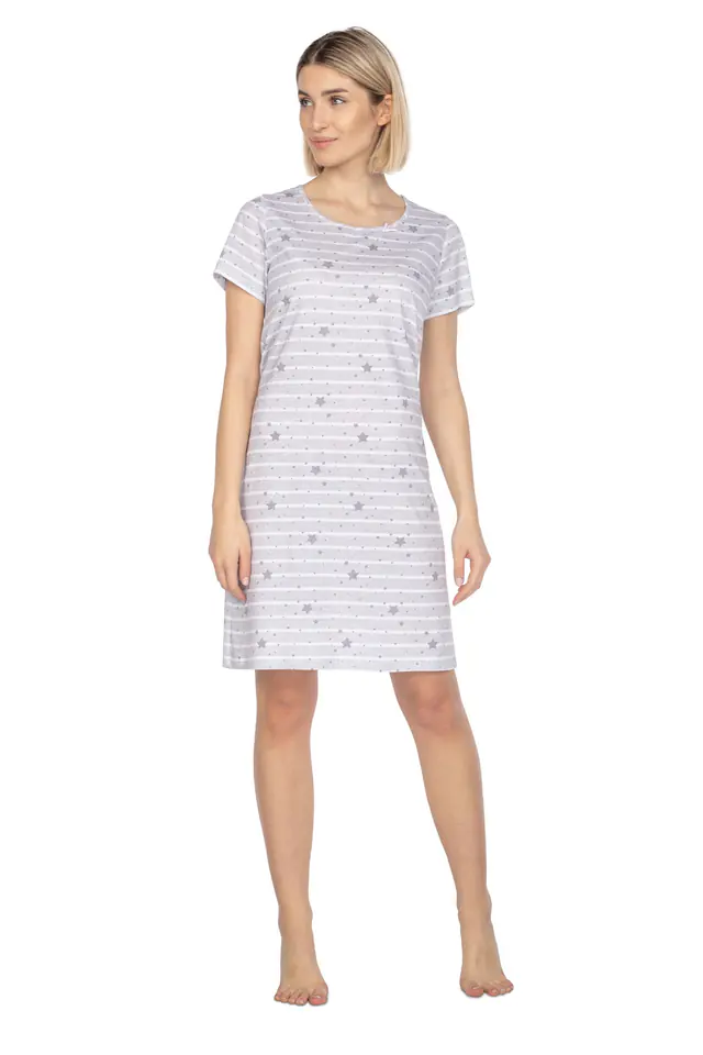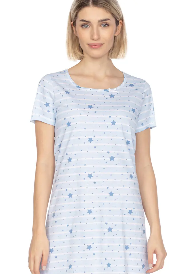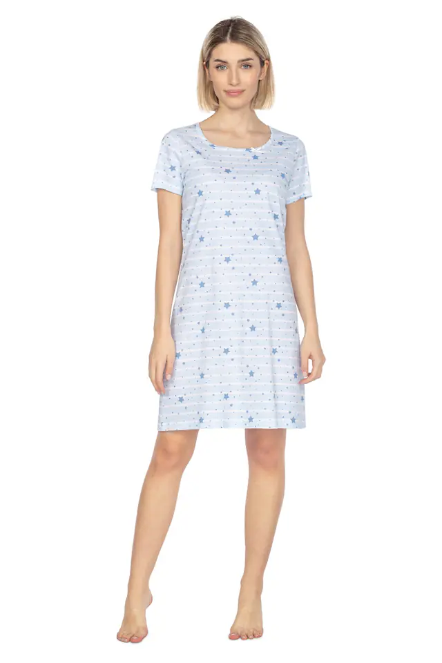 Koszula damska wzorzysta wykonana z wysokiej jakości bawełny. Krótki rękaw, długość przed kolano. Skład: 100% bawełna.
