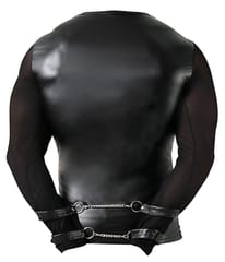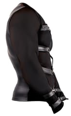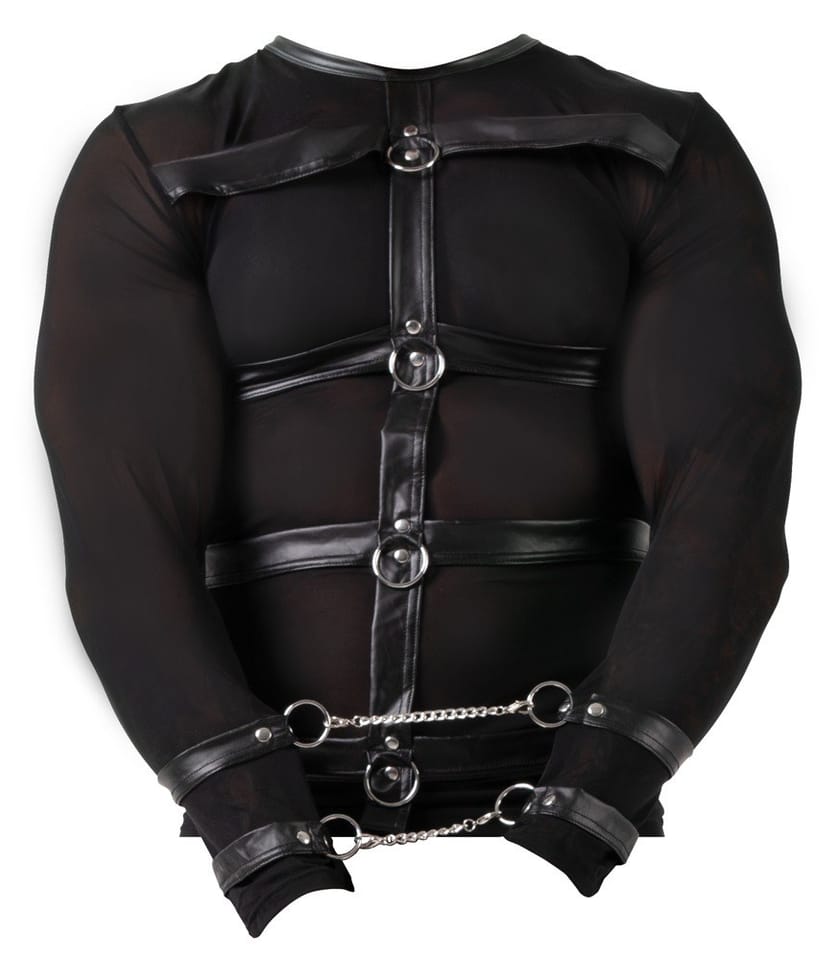 Ekskluzywny, urzekający design do miękkich gier bondage!Koszulka z długim rękawem firmy Svenjoyment Bondage wykonana z miękkiej, rozciągliwej siateczki z naszytą uprzężą z przodu. Szelki posiadają ozdobne kółka. Tył koszulki wykonany w całości z modnego, matowego materiału. Długie rękawy z powernetu mają naszyte ograniczenia o matowym wyglądzie. Dołączony krótki łańcuszek łączący z karabińczykami można przymocować do pierścieni na ogranicznikach.90% poliester, 10% spandex; powernet 90% poliamid, 10% spandex.